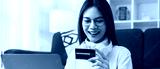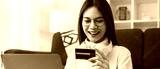 Young Asian woman holding credit card and using laptop for shopping online with payment on internet banking.