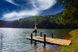 Yoga Young girl or people pose balance body vital zen meditation for workout nature mountain background in morning sunrise.Lifestyle woman yoga exercise and pose for healthy life.