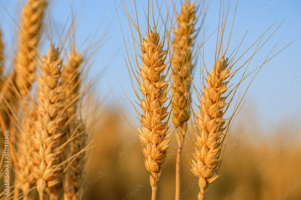 Ripe wheat field nature scenery in summer field. Agricultural scene.