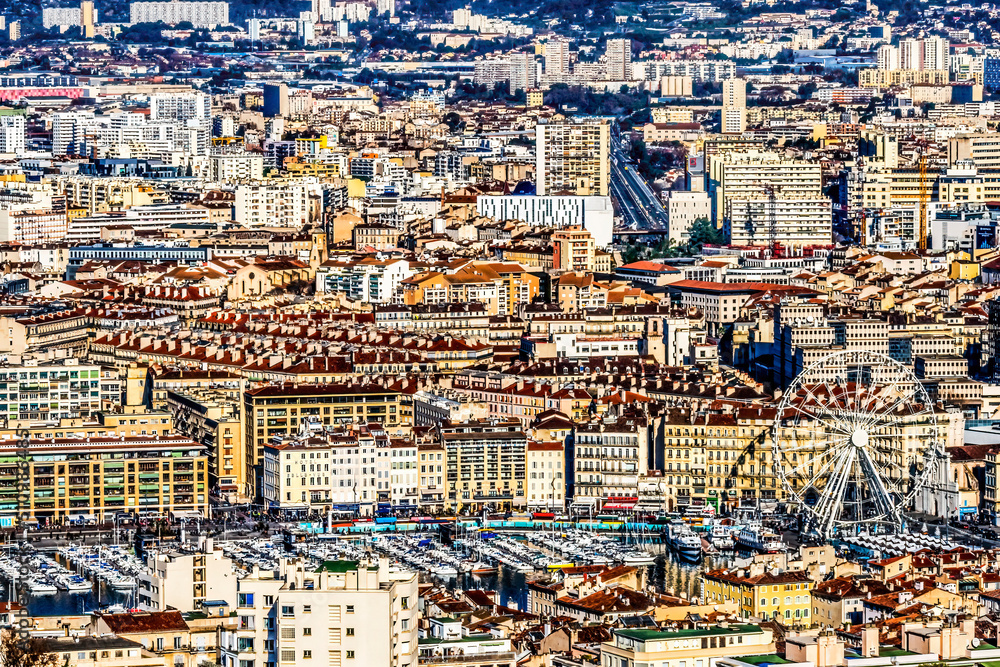 Ferris Wheel Cityscape Harbors Ships partment Buildings Marseille France
