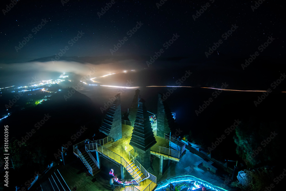 Night time image with stars of the Mount Bromo volcano in the Bromo Tengger Semeru national park on East Java, Indonesia