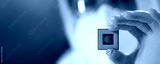The scientist works in a modern scientific laboratory for the research and development of microelectronics and processors. Microprocessor manufacturing worker uses computer technology and equipment.
