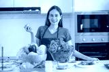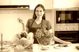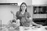 Asian women cooking salad vegetable organic eat healthy at kitchen home