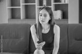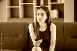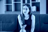 Asian women looking television relaxing at home ,Young Asian teenager woman watching TV at home, female feeling happy lying on sofa in living room. Lifestyle woman relax in morning at home concept.