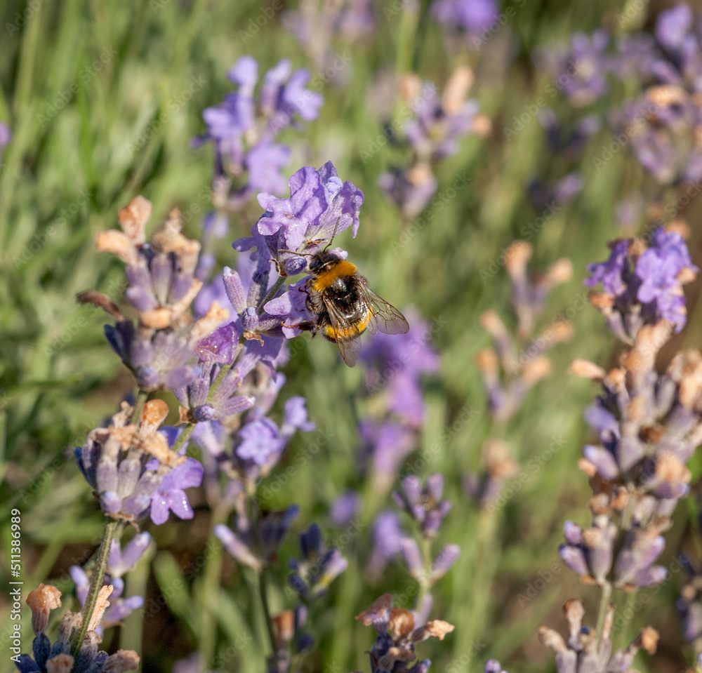 Bumble bee sucking nectar from lavender