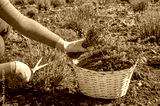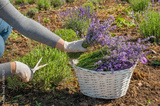 gardener collects in a basket cut lavender inflorescences