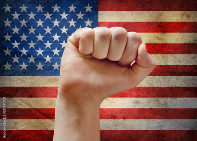 USA flag with fist.