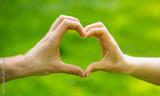 Hands, heart, couple. Closeup of couple making heart shape with hands. The hands of women and men are the heart the hands. Beautiful young couple is making heart of fingers
