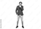 Sexy male, brutal macho, hipster. Hand in with wrist watch in a business suit. Elegant handsome man in suit. Handsome bearded businessman in classic suits