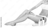 Waxing woman leg with wax strip at beauty spa. Close-up waxing woman leg in spa. Shave legs electric epilator. Woman depilates her leg with an electric epilator device in the bathroom