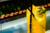 Fresh ice cold orange maraquia lemonade dressed with mint and orange slices in a glass under sunlight