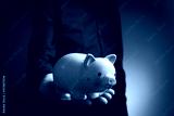 Human hand protecting a piggy bank