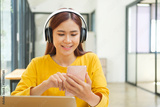 Close up of woman using mobile phone.