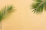 Image of tropical green palm over yellow pastel background