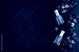 Perfume essential oil in glass bottles, top view. Traditional Arabian fragrance
