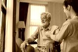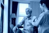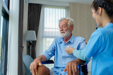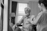a nurse with a stethoscope listens to an elderly patient Check the heart, check the old people, retire at home. Elderly heart disease, heart disease concept