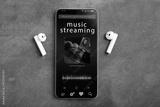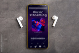 Streaming service. Listen music online concept online music player app on smartphone
