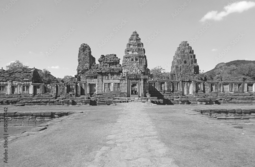 Prasat Hin Phimai, amazing ancient Khmer temple complex in Nakhon Ratchasima, Thailand in Monochrome