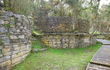 Ruins of the iconic ancient stone round houses in Kuelap archaeological site, located on the mountaintop of Amazonas region, northern Peru
