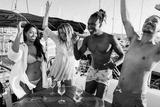 Happy multiracial friends having fun dancing together at boat party outdoor - Focus on african girl face