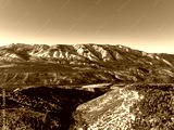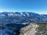 Aerial view over Big Bear Lake and San Bernardino National Forest with now, South California, USA