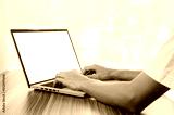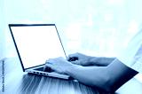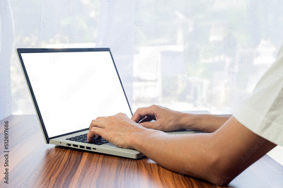 Man using computer screen blank for mockup design, computer laptop