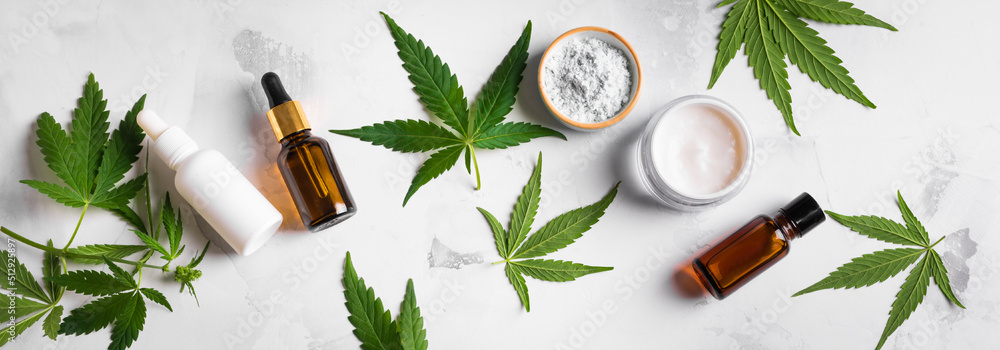 Hemp cannabis leaves and beauty products