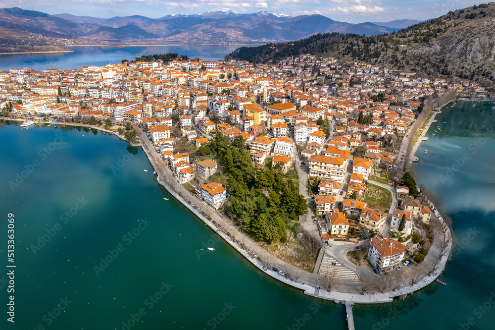 Aerial view of the city of Kastoria and Lake Orestiada in north Greece.