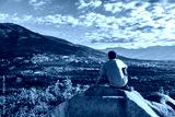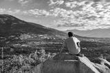 Man contemplating the views of El Escorial between the mountains, Madrid.