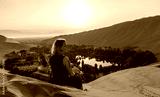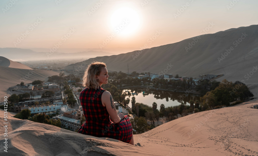 Tourist woman in Huacachina the Oasis of Ica Peru.