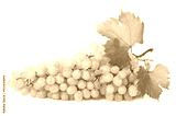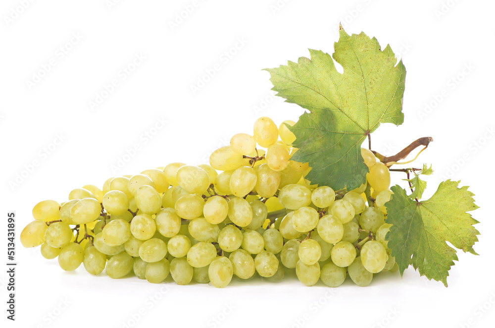 Grape cluster with leaves isolated on the white background