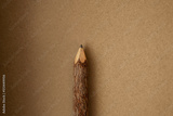 Top view or flat lay Old fashioned or classic style pencil made of nature real wood from trees and toxin free on light brown notebook cover or cardboard box paper texture background and space
