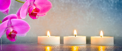 Japanischer ZEN Garten mit Kerzen und Flamme