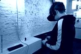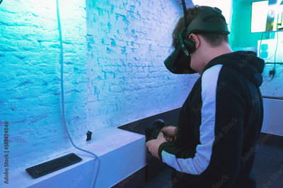The boy is playing a game in virtual reality.