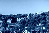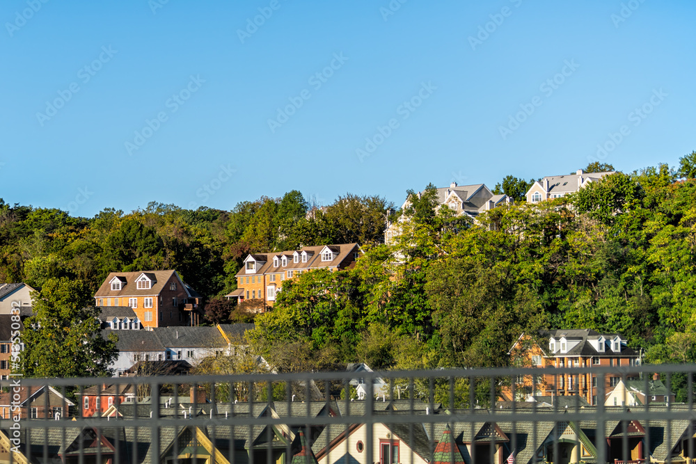 Historic town of Occoquan neighborhood in northern Virginia houses buildings architecture view of cityscape skyline and blue sky in Prince William County near Washington DC