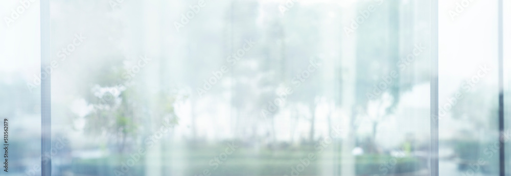 Blurred images of glass wall with city town background.modern abstract window for banner