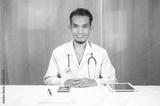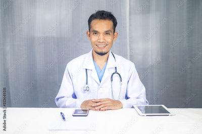 Asian doctor working in office at hospital