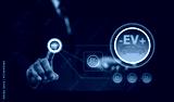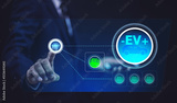 Start EV car concept on application mobile technology, Electric car virtual reality concept EV charging station for green energy and eco power.