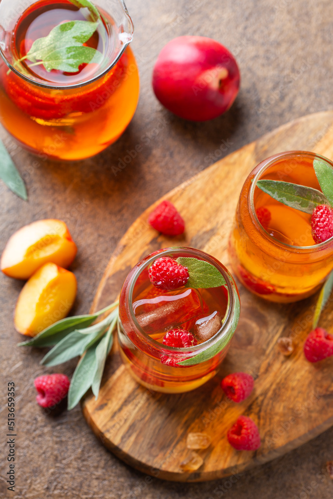 Peach raspberry iced tea, summer refreshing drink, beverage, cocktail