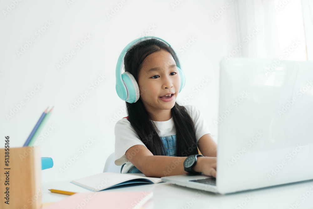 Online education and self study and homeschooling concept..study online video call with teacher..