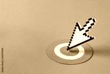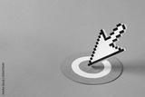 Pixel digital arrow mouse pointer modern technology as the arrow hit the target. Minimal creative concept with copy space.