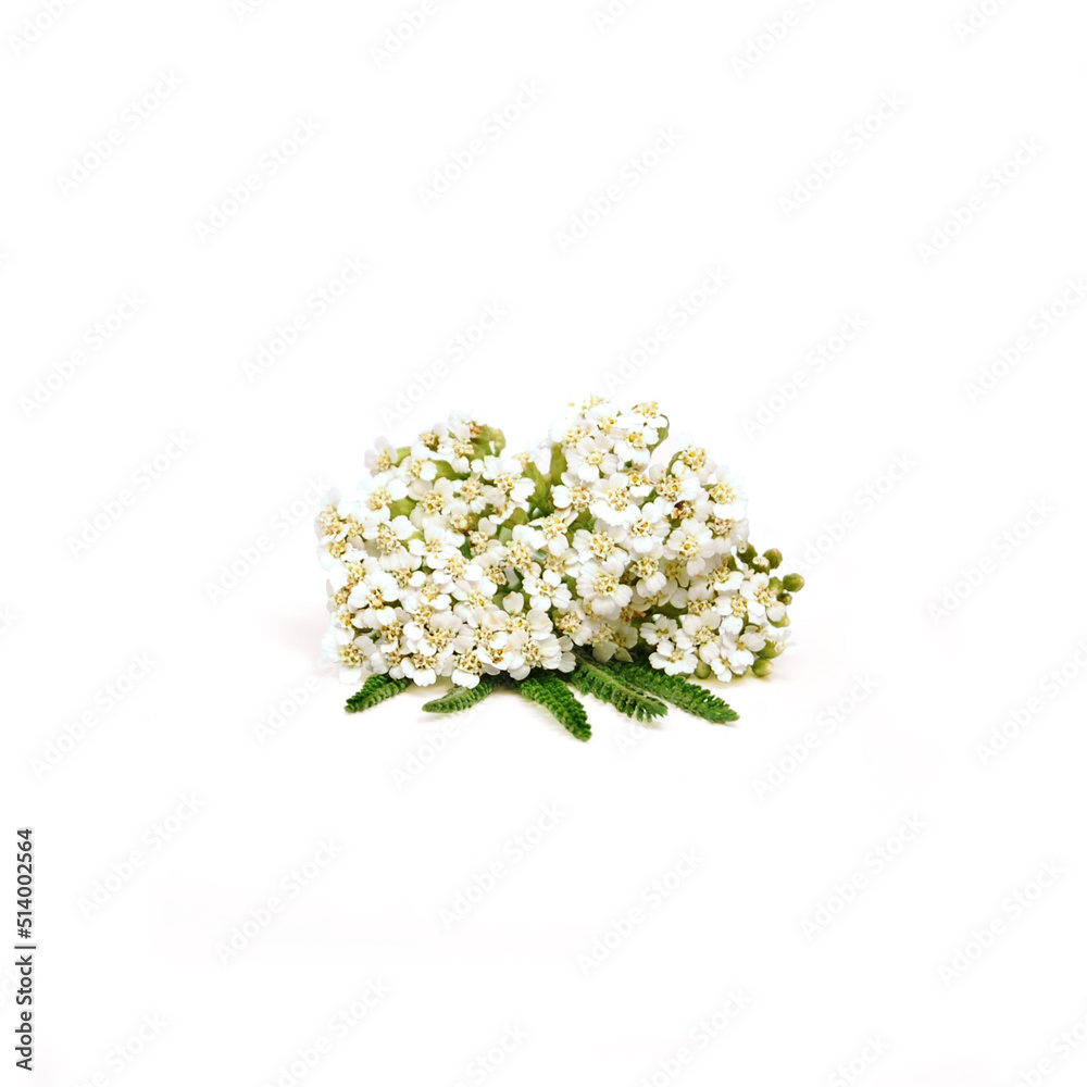 Yarrow plant isolated, blooming Achillea millefolium close up isolated on white background
