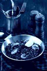 Black Paella with Prawn and Lemon, Seafood Spain Food