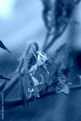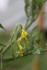 Flowering tomato plant in the vegtable garden. Yellow Solanum lycopersicum flowers on summer