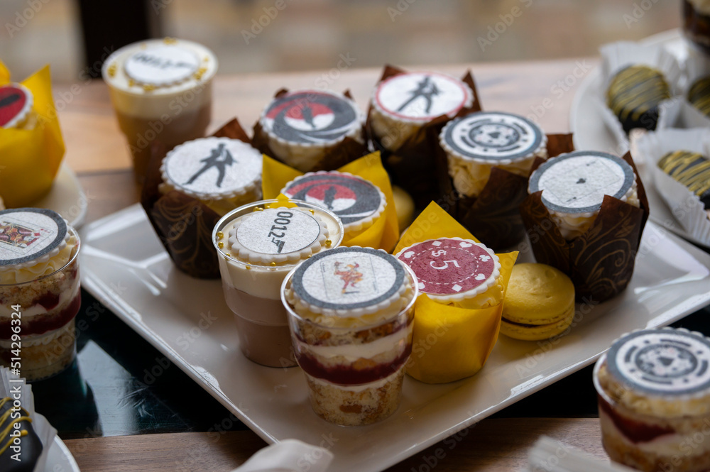 cakes sweets candy bar for guests in the restaurant on the catering table