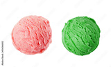 Strawberry and pistacchio ice cream ball isolated on white background