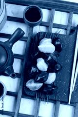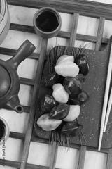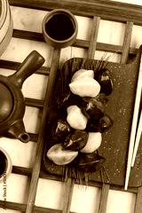 Traditional Chuseok Day Food, Korean Half Moon Shaped Rice Cake or Songpyeon. Made from Korean Rice Flour with Sesame Seed