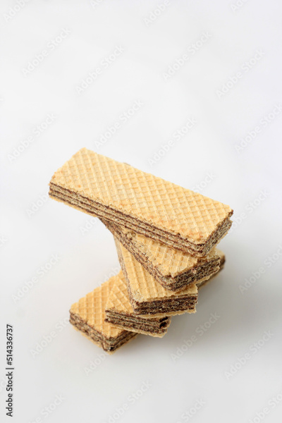 Stacked Chocolate Wafer on White Background
