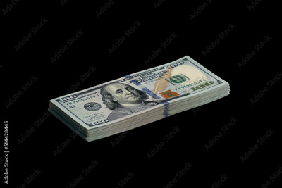 Bundle of US dollar bills isolated on black. Pack of american money with high resolution on perfect black background