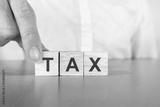 tax letters on a wooden box,Legal tax management